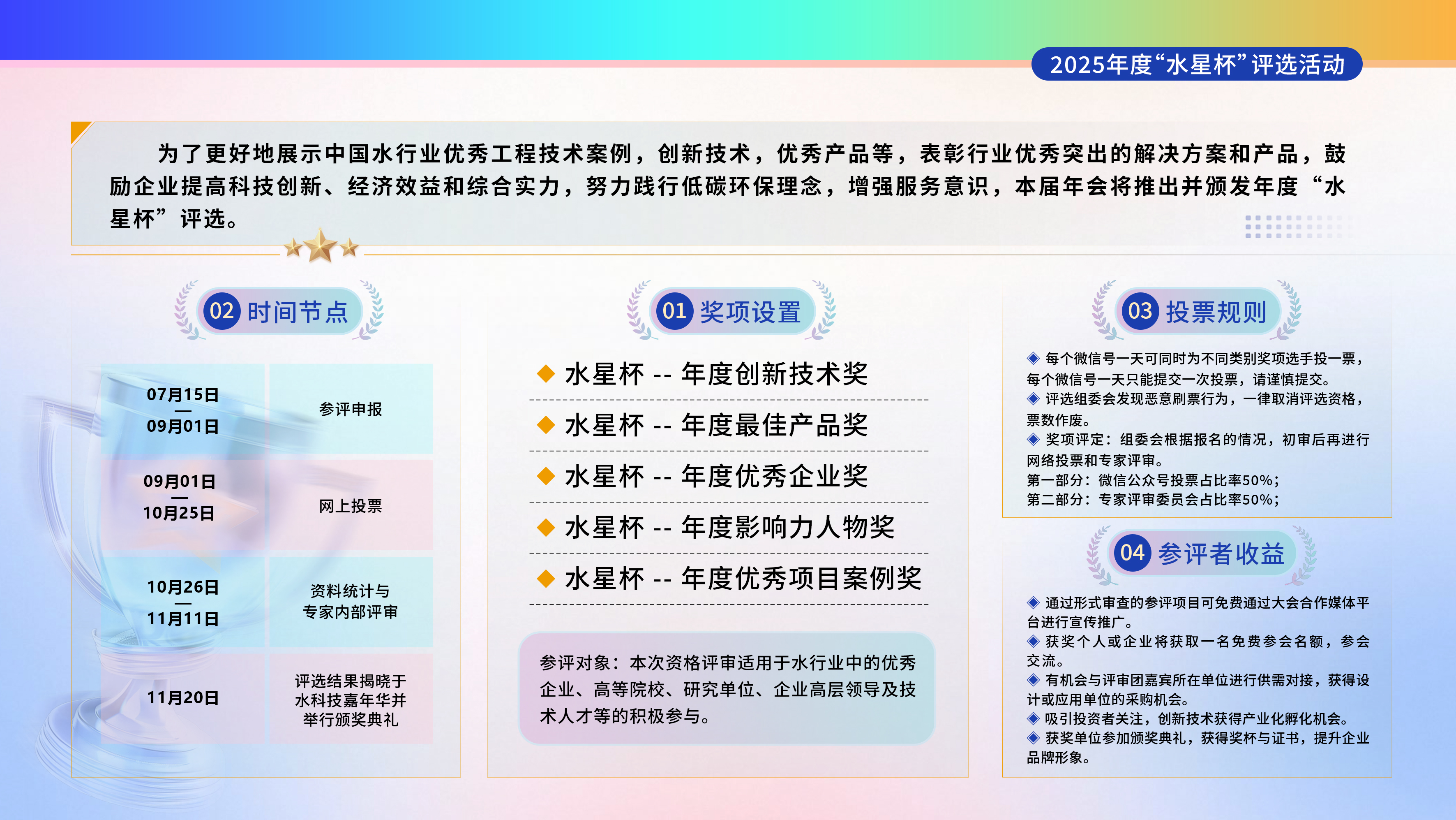 · 價(jià)值賦能顯著:獲獎(jiǎng)成果將獲得行業(yè)權(quán)威認(rèn)可,納入 “技術(shù)成果庫(kù)”,與全國(guó) 300 余家水務(wù)集團(tuán)、工業(yè)園區(qū)直接對(duì)接,加速創(chuàng)新技術(shù)從實(shí)驗(yàn)室走向生產(chǎn)線,讓創(chuàng)新真正轉(zhuǎn)化為產(chǎn)業(yè)效益。