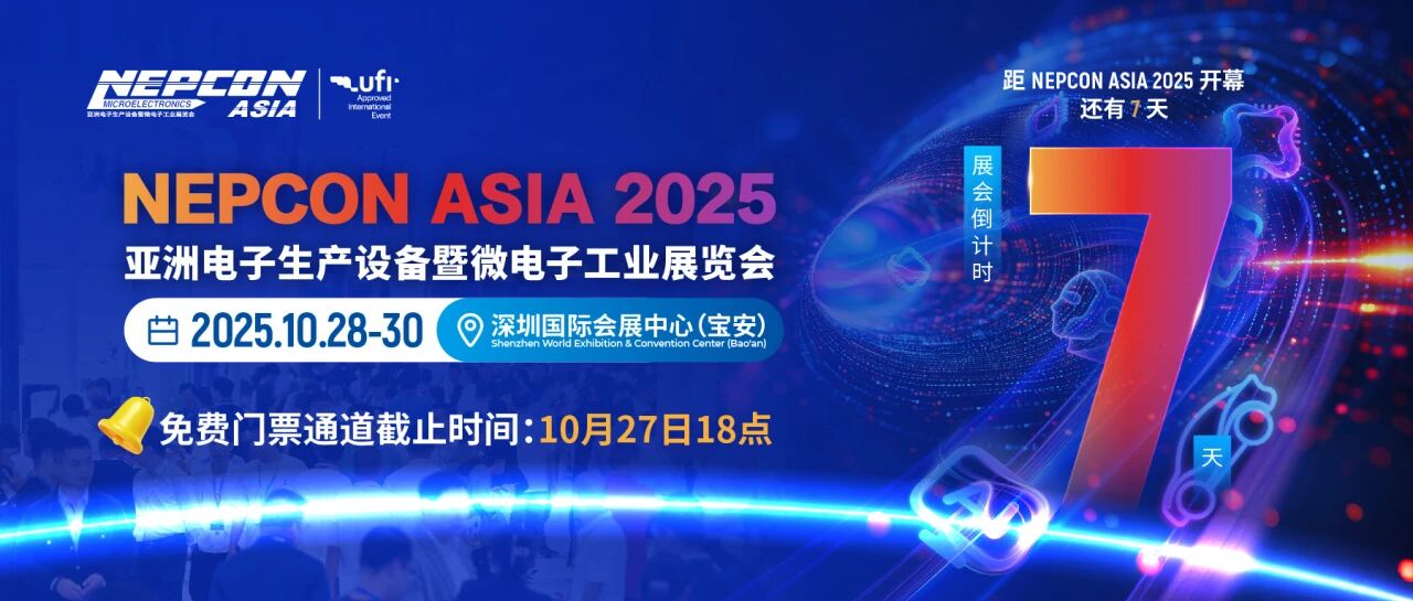 電子展:倒計(jì)時(shí)7天!NEPCON ASIA 2025重磅發(fā)布眾多亮點(diǎn)展區(qū)、40場(chǎng)高端論壇、新品首發(fā)及前沿方案,搶先登記免費(fèi)領(lǐng)100元門票